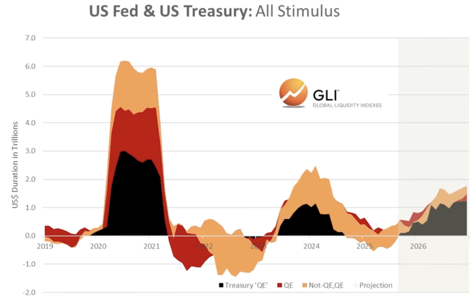 “No solo la deuda aumenta rápidamente, sino que unos mercados financieros estables necesitan una reserva cada vez mayor de liquidez global para facilitar la renovación y refinanciación continua de esta deuda. En resumen, para mantener una ratio deuda/liquidez constante, la Liquidez Global y la deuda deben crecer al mismo ritmo. Dado que la Liquidez Global es un factor determinante de los precios de los activos, este hecho debe orientar la asignación de activos……. Se prevé que la deuda pública estadounidense crezca cada año a una tasa promedio exorbitante del 11% del PIB, o el equivalente a un aumento del stock de deuda nominal de aproximadamente el 7% anual, y todo ello suponiendo, heroicamente, que no haya recesiones futuras.”